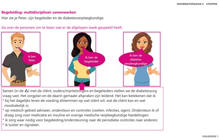 In deze e-learning wordt ingegaan op wat diabetes (‘suikerziekte’) inhoudt voor de cliënt zelf en voor de omgeving. Waar moet je rekening mee houden in de dagelijkse omgang en het eten? Welke zaken moeten extra worden gecontroleerd? Hoe herken je een ‘hypo’ (te lage bloedsuiker) en wat doe je dan? Ook leer je omgaan met een bloedsuikermeter en, indien van toepassing, het injecteren met een insulinepen. Deze e-learning is onderdeel van een praktische cursus.