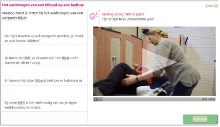 Deze e-learning is onderdeel van een praktische cursus en bevat theoretische over de omgang met een tillift. Behandeld worden de stalift, verrijdbare tillift en de plafondlift. Het werken met de tillift is een risicovolle handeling. Het behalen van een bekwaamheidsverklaring is een vereiste om met een tillift te mogen werken. Na de cursus kan de deelnemer de cliënt op verantwoorde wijze tillen en transfereren met behulp van de tillift.