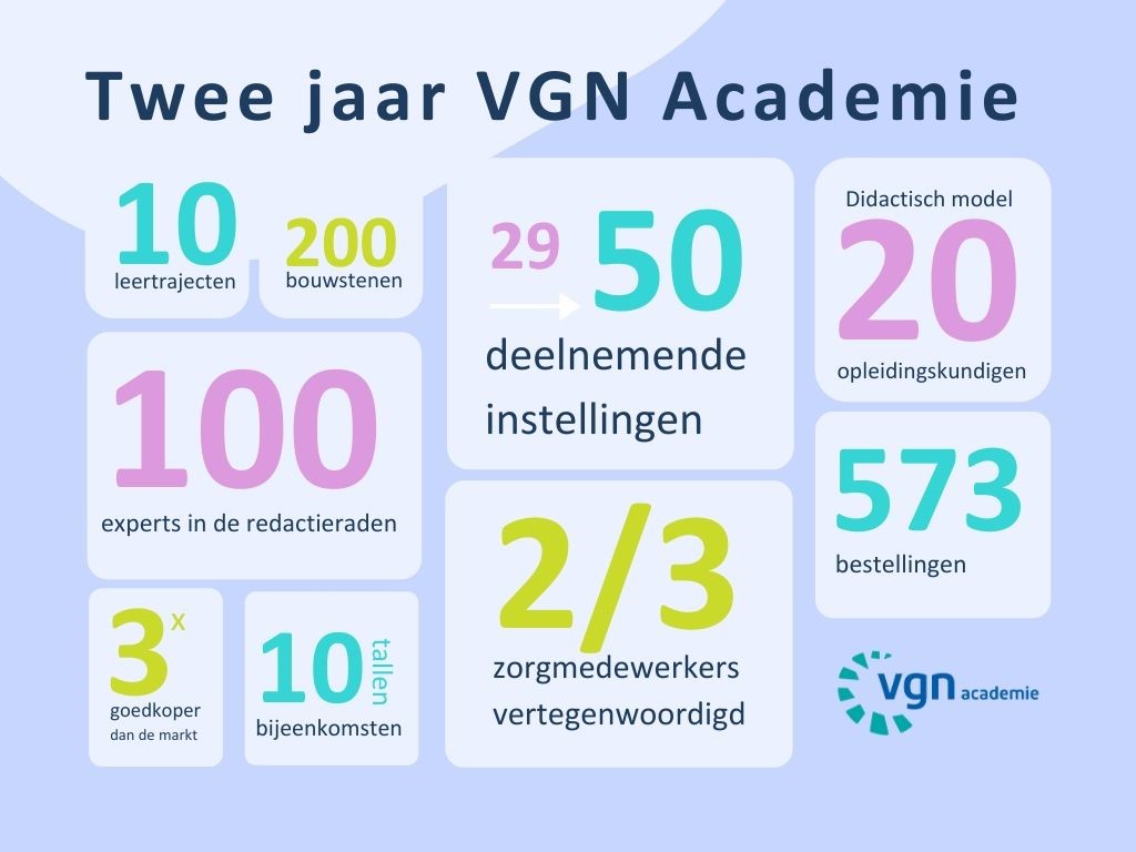 In 2020 zet de VGN Academie het succes van de eerste twee jaar voort. We kijken nog één keer terug op die eerste twee jaar met deze infographic.