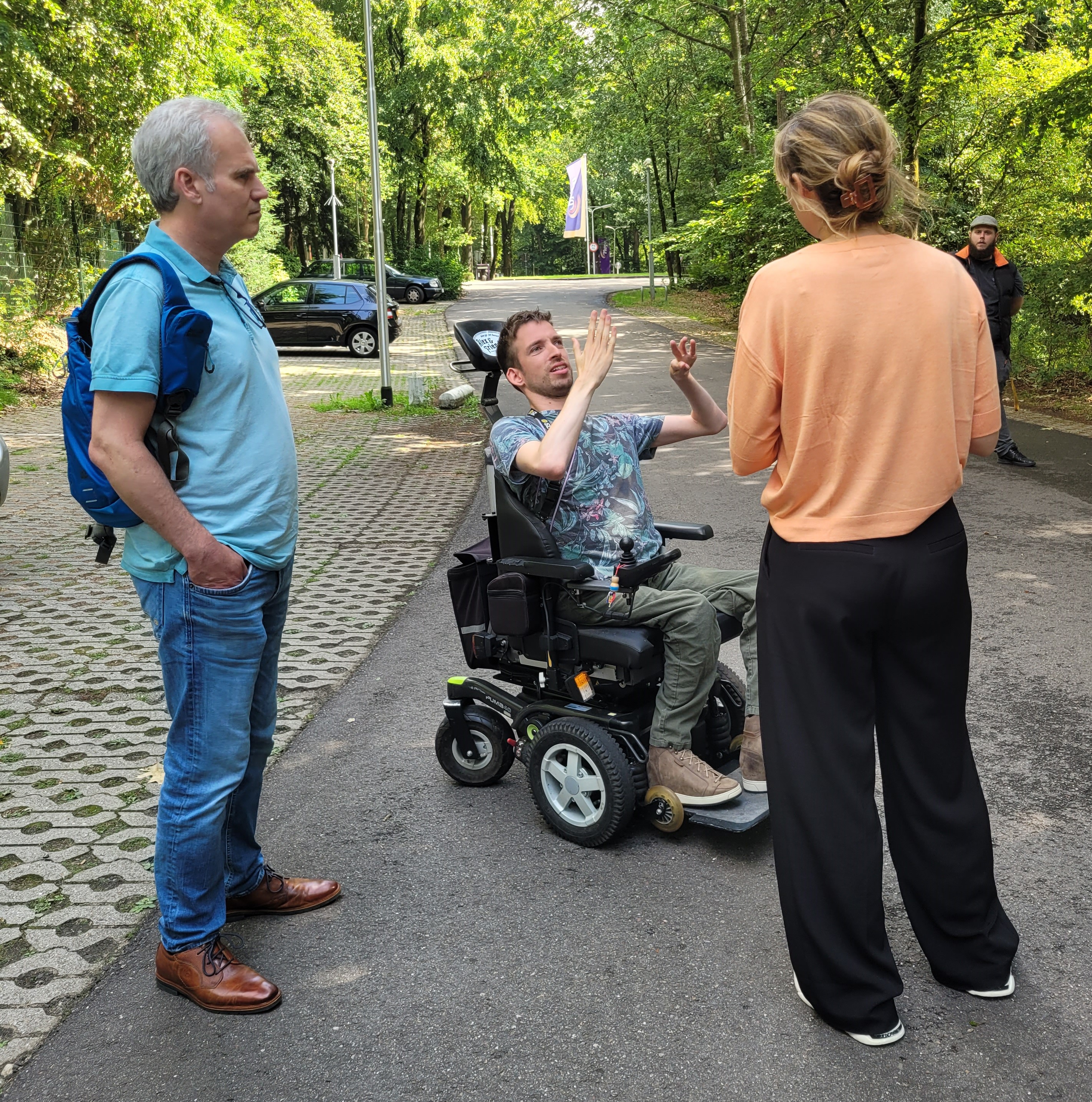 ‘Ik zou nog wat smokkelopnames maken,’ zegt Rob Jacobs. Hij is in een dubbelrol aanwezig bij de opnames voor het leertraject Ethisch handelen van de VGN academie. Als ervaringsdeskundige bepaalt hij mede de inhoud van het leertraject én werkt hij bij het Multimediateam van Pluryn dat de de film maakt. Van Rob kwam het idee voor een ethisch dilemma dat wordt verfilmd, waarbij reflectie een grote rol speelt. Samen met een collega van de redactie, een onderwijskundige van BLEND leren en contentcoördinator Sietske Tanis van de VGN academie ziet Rob er op toe dat de scène realistisch is en dus kan voorkomen op de werkvloer. In oktober komt het leertraject Ethisch handelen beschikbaar voor deelnemers aan de VGN academie.